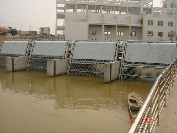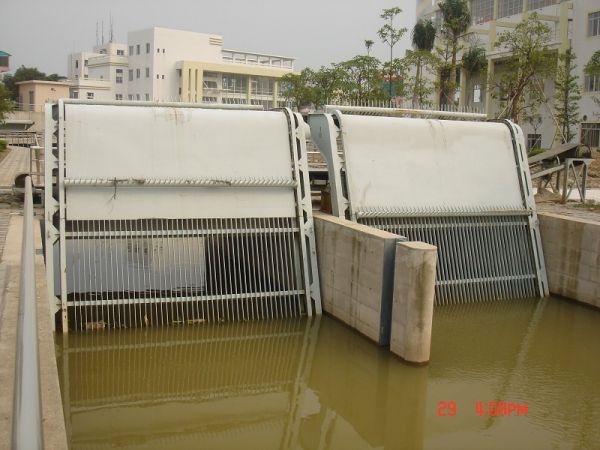 HQN  型回转式格栅清污机固定安装在泵 站、水电站、污水雨水排放处、自来水取水处 等水工建筑物的进水口处,以拦污栅拦截水流  中所挟带的污飘浮物(树枝、树叶、杂草、生  活垃圾等),并通过回转的齿耙将其